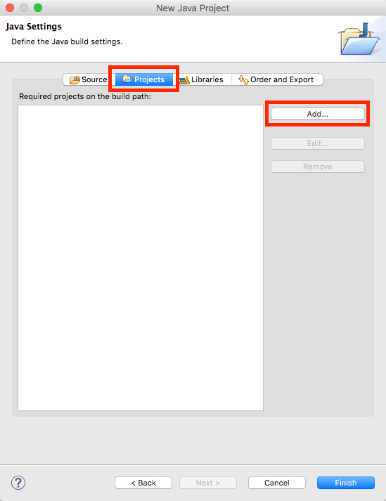 Select the Projects tab and press Add....